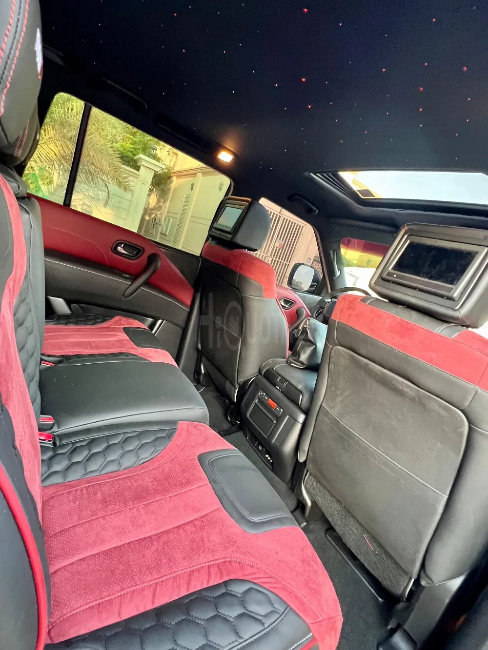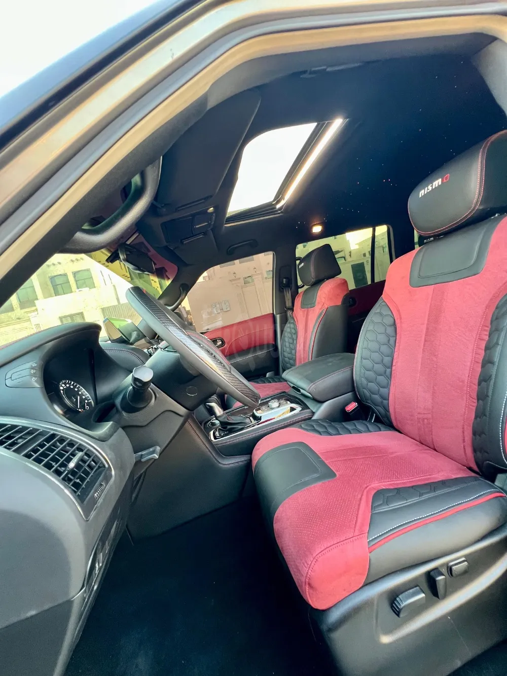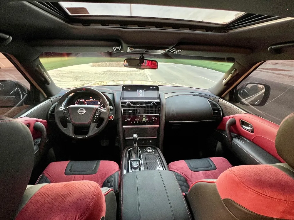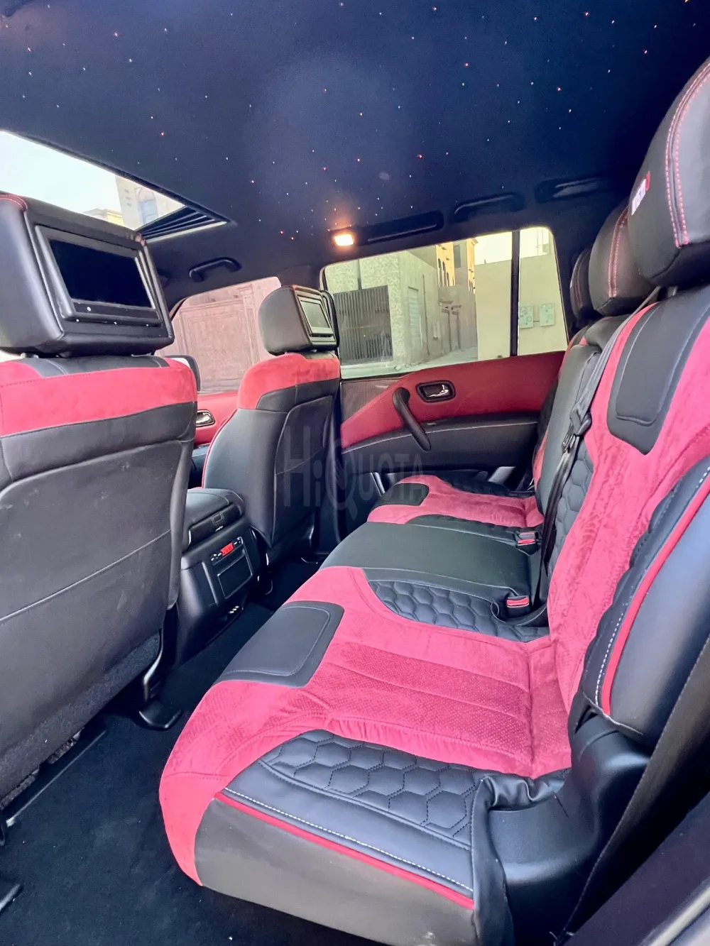 نيسان باترول فل كامل 11 مكينة كبيرة LE 400 موديل 2013 خليجي محول نسمو بالكامل 2024 داخلي وخارجي مع رنقات وتواير جديدة لون رمادي وداخل جلد لونين جلد احمر واسود مع سقف نجوم خرائط شاشات خلفيية شاشة امامية عريضة تبريد كراسي فتحة ثلاجة مثبت سرعة وتحكم فالسكان دبة كهرباء دخول بدون مفتاح تشغيل عن بعد من الريموت تشغيل بصمة كشافات LED بلوتوث & USB دبة خلفية كهربا الموتر نظيف جدا و بحالة ممتازة مشدود بالكامل ملكية وتامين سنة مفتاحين الوكالة