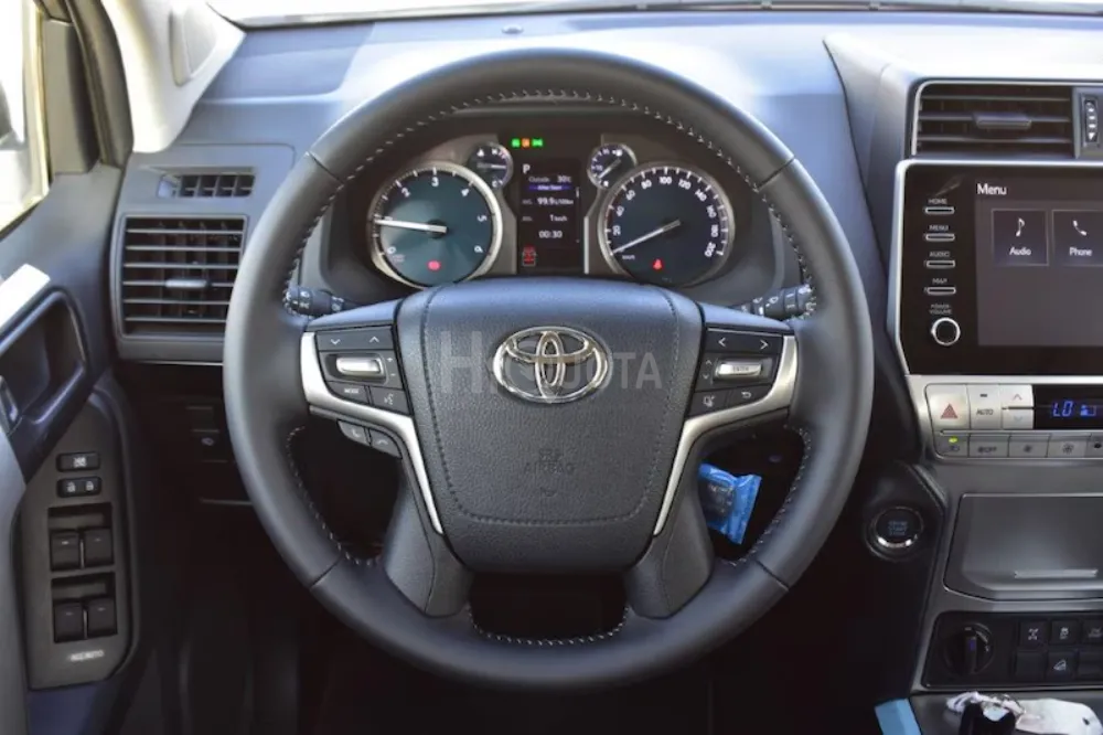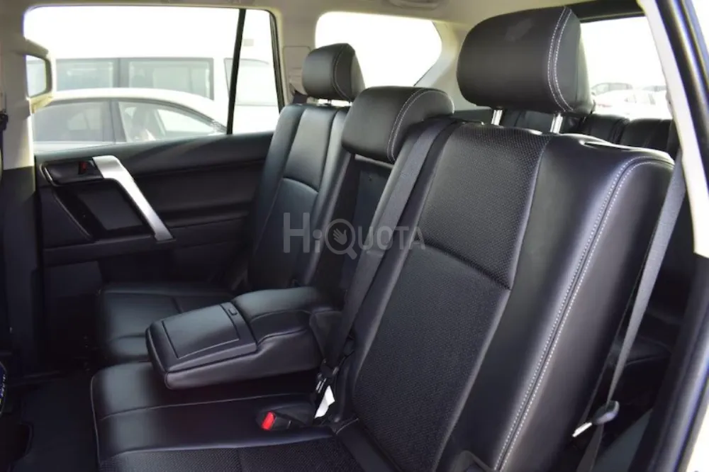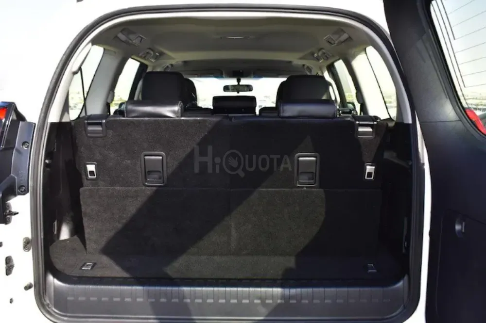 BRAND NEW LHD - TOYOTA PRADO VX 2.8L DIESEL 7-SEATER AUTOMATIC - EURO SPEC 2023 MODEL TOYOTA PRADO VX 2.8L DIESEL 4WD 7-SEATER AUTOMATIC MODEL CODE GDJ150L – GKTEYW TECHNICAL FEATURES ENGINE- 1GD FTV, 4 CYLINDER, IN LINE – EURO 6 INJECTION-COMMON RAIL TYPE COMPRESSION RATE-15.6:1 MAX. POWER (KWTM) KW-RPM ENGINE CAPACITY-2755 CC MAX. POWER (HPTM)-204 DIN POWER-204 HP MAX. TORQUE (NMTM) NM-RPM TRANSMISSION-6 SPEED AUTOMATIC MAXIMUM SPEED-175 KMH 0-100 KMH-9.9 SECONDS COMBINED CYCLE CONSUMPTION (L100KM - WLTP)-9.5 L100 KM CO2 COMBINED CYCLE (GKM - WLTP)-248GKM FUEL TANK -87L NOISE LEVEL AT IDLE-74.0 DB(A) NOISE LEVEL DRIVING BY-71.4 DB(A) SUSPENSION-TRACK IN FRONT 1585MM, TRACK AT THE BACK-1585MM WHEEL SIZE-P26565R17 110S 17X7 12J NUMBER OF DOORS-5 LENGTH-4840MM WIDTH-1885MM HEIGHT-1845MM WHEELBASE-2790MM TRUNK VOLUME-640 L EXTERIOR AND SAFETY FEATURES SPARE TIRE UNDERNEATH WITH LOCK SMART ENTRY & START HEADLIGHTS WITH "FOLLOW-ME-HOME" FUNCTION LIGHT SENSOR HEATED EXTERIOR MIRRORS ELECTRICALLY FOLDING EXTERIOR MIRRORS ELECTRICALLY ADJUSTABLE EXTERIOR MIRRORS DOOR LOCK WITH REMOTE CONTROL FOOTSTEPS FRONT MUD FLAPS REAR MUD FLAPS REVERSING CAMERA BRAKE ASSIST (BA) EMERGENCY STOP SIGNAL (EBS) ABS 3RD TRAFFIC LIGHT (LED) LED TRAFFIC LIGHTS STABILITY CONTROL (VSC) LED LIGHTS IN THE BACK LED HEADLIGHTS MANUAL HEIGHT ADJUSTMENT OF THE HEADLIGHTS LED DAYTIME RUNNING LIGHTS LED FOG LIGHTS CHROME PLATED INSERT ON GRILLE CHROMED EDGE ON GRILLE FRONT BUMPER IN BODY COLOR REAR BUMPER IN BODY COLOR EXTERIOR MIRRORS IN BODY COLOR BODY COLOR DOOR HANDLES GRAY INSERT ON TRUNK DOOR BLACK FOOT STEPS "SHARK FIN" TYPE ANTENNA INTEGRATED ANTENNA BLACK SURROUNDS ON FRONT FOG LAMPS SPEED LIMITER (ASL) SPEED LIMITER WITH MEMORY CRUISE CONTROL IMMOBILIZER ACTIVE TRACTION CONTROL (A-TRC) HILL START ASSIST CONTROL (HAC) DOWNHILL ASSIST CONTROL (DAC) TIRE PRESSURE MONITORING (TPWS) TRAILER STABILITY CONTROL (TSC) PASSENGER AIRBAG DEACTIVATION FRONT SEAT BELTS WITH REMINDER PRETENSIONERS AND FORCE LIMITERS WIL TYPE FRONT SEATS INTERIOR FEATURES: 4-SPOKE STEERING WHEEL (LEATHER) SILVERY CENTRAL CONSOLE CHROME PLATED INSERT ON AIR NOZZLES GEAR LEVER IN LEATHER CHROMED RIM ON CENTRAL CONSOLE HANDBRAKE IN LEATHER ARMREST IN ALUMINUM DOOR SILLS BLACK INSERT ON LOWER PASSENGER DASHBOARD TRI ZONE CLIMATE CONTROLLED AC START BUTTON HEIGHT-ADJUSTABLE STEERING WHEEL DIGITAL SPEEDOMETER POWER STEERING DAY & NIGHT REAR VIEW MIRROR REVERSE MONITOR STATIC PARKING GUIDES ON REVERSE MONITOR CLEAN AIR FILTER DRIVER + FRONT PASSENGER SEATS – POWERED FRONT SEATS HEATER HEIGHT-ADJUSTABLE DRIVER'S SEAT LUMBAR SUPPORT ON DRIVER'S SEAT 2ND ROW SEATS, FOLDING 40:20:40 (ON 5DR) ELECTRIC WINDOWS IN THE FRONT REAR ELECTRIC WINDOWS (ON 5DR) ELECTRIC WINDOWS WITH AUTO UP & DOWN FUNCTION REAR WINDOWS WITH UV FILTER SUN SHADE BAND ON WINDSHIELD INTERIOR LIGHTING (FRONT) READING LIGHTS (FRONT) INTERIOR LIGHTING (REAR) TRUNK LIGHTING RECEPTION LIGHTING DOOR LIGHTING SUNSHADE WITH LIGHTING (DRIVER) SUNSHADE WITH LIGHTING (PASSENGER) SUNSHADE WITH MIRROR (DRIVER) SUNSHADE WITH MIRROR (PASSENGER) 12V SOCKET IN THE FRONT 12V CONNECTION AT THE BACK 220V CONNECTION CENTRAL DOOR LOCKING WITH DRIVER CONTROL AUTOMATIC DOOR LOCKING (SPEED DETECTION) CHILD LOCK MULTI-INFO COLOR SCREEN 4.2'' TFT MULTI-INFO DISPLAY ECO MODE MONITOR GEAR SHIFT INDICATOR (GSI) STEERING WHEEL AUDIO CONTROLS MULTI-INFO CONTROLS ON STEERING WHEEL PHONE CONTROLS ON STEERING WHEEL VOICE RECOGNITION CONTROLS ON STEERING WHEEL REAR HANDLES FRONT HANDLES FRONT ACCESS HANDLES REAR ACCESS HANDLES (ON 5DR) MULTIMEDIA TOYOTA TOUCH 2 MULTIMEDIA SYSTEM DAB RADIO 9 SPEAKERS USB CONNECTION BLUETOOTH SYSTEM 9" MULTIMEDIA DISPLAY SMARTPHONE INTEGRATION GLOVE BOX WITH LOCK GLOVE BOX WITH LIGHTING DENT POCKETS IN THE FRONT REAR DOOR POCKETS BOTTLE HOLDERS IN THE FRONT BOTTLE HOLDERS AT THE BACK CUP HOLDERS IN THE FRONT CUP HOLDERS IN THE BACK CLOTHES HOOKS AT THE BACK (2) SUNGLASSES HOLDER POCKETS IN THE BACKRESTS OF THE FRONT SEATS LUGGAGE SCREEN LEATHER SEATS FRONT REAR BUMPER BODY KIT ROOF RAIL DOOR SIDE MOULDING BODY STRIP REAR TAIL LAMP CHROME
